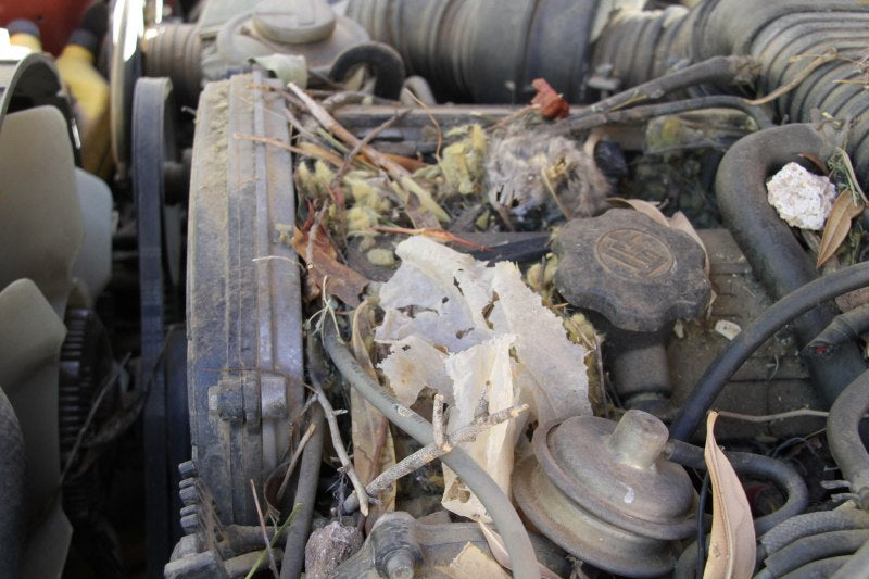 Clean any existing debris In motor and use an enzyme neutralizing cleaner on any waste left by rodents (scents left in waste attract other rodents)